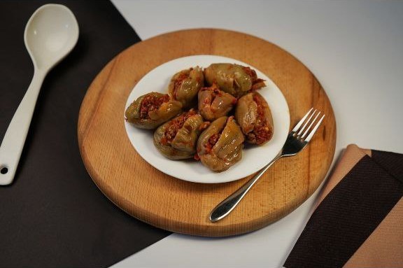 Baby eggplants stuffed with walnuts, garlic & red pepper, cured in olive oil